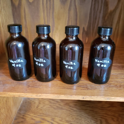 Upgrade your baking and ice cream game! We import vanilla beans from Madagascar and extract them in alcohol for a minimum of twelve months. Beans stay in the jars so the extract strengthens as it sits in your pantry. I typically use half or to a quarter of the recipe when baking with this rare, rich, and deep flavored product. Single fold, fourteen months aged, at the time of this writing.